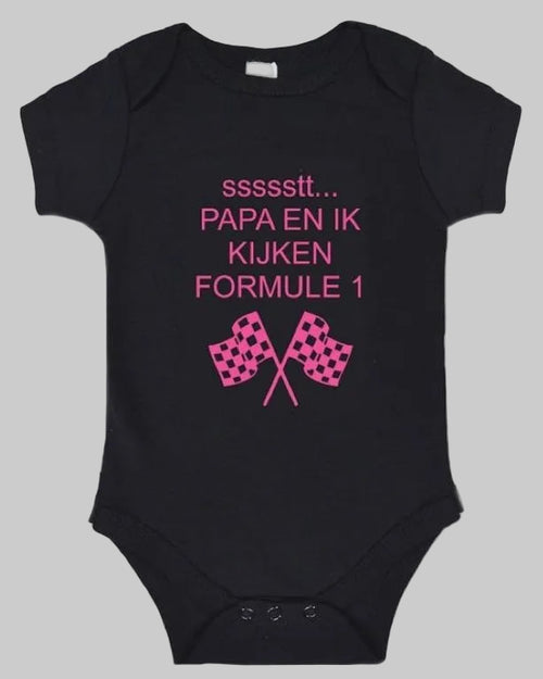 Baby Romper βPapa en ik kijken Formule 1β β Zwart/Roze